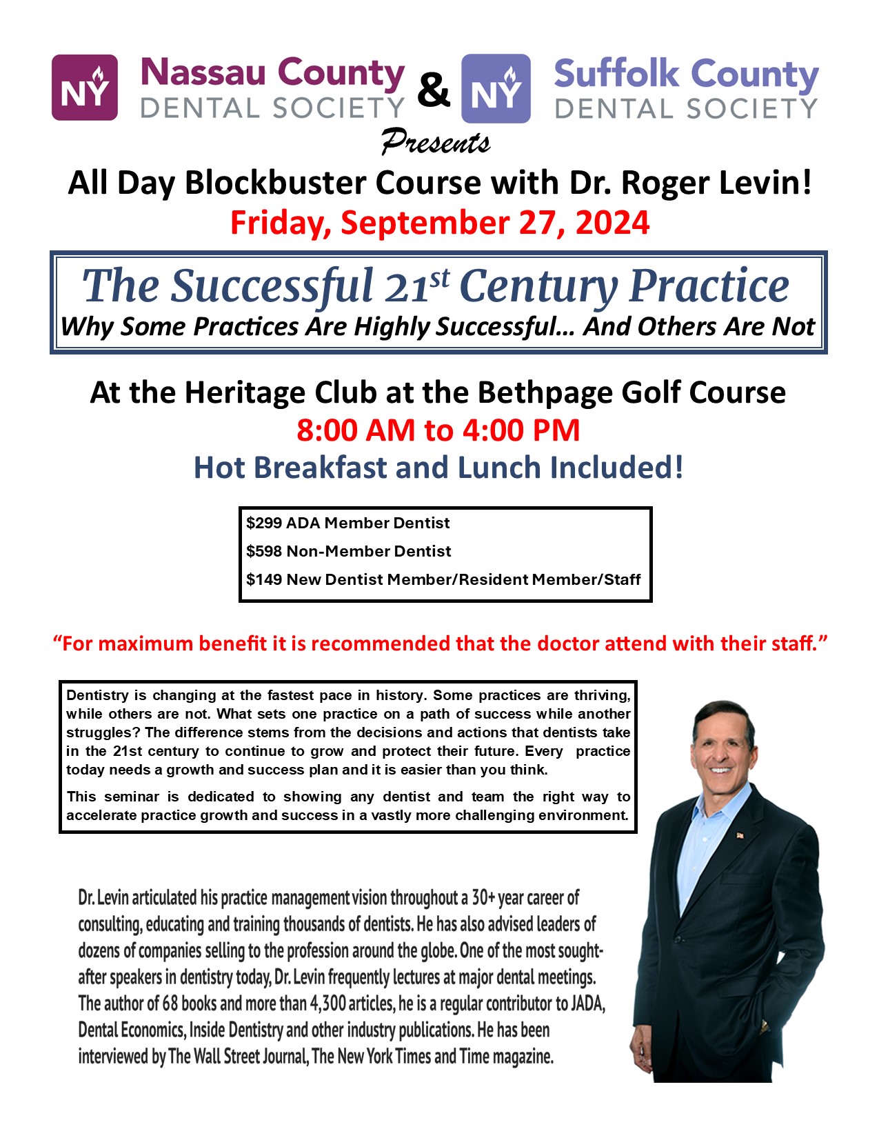 Successful 21st Century Practice September 27, 2024 8:00 AM - 4:00 PM Location: The Heritage Club at the Bethpage Golf Course Address: 99 Quaker Meeting House Rd., Farmingdale, NY, United States Add to: Outlook ICal Google Calendar